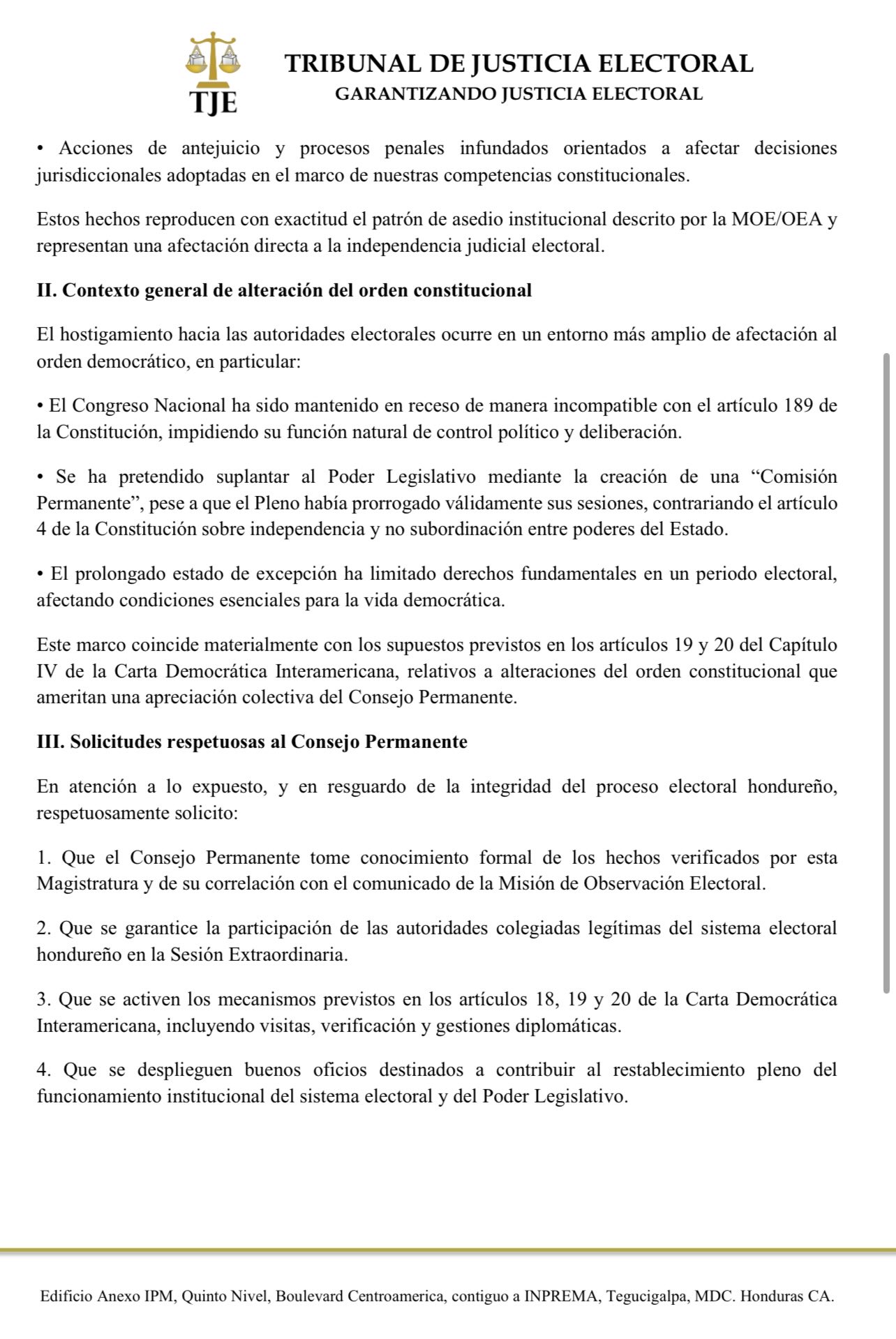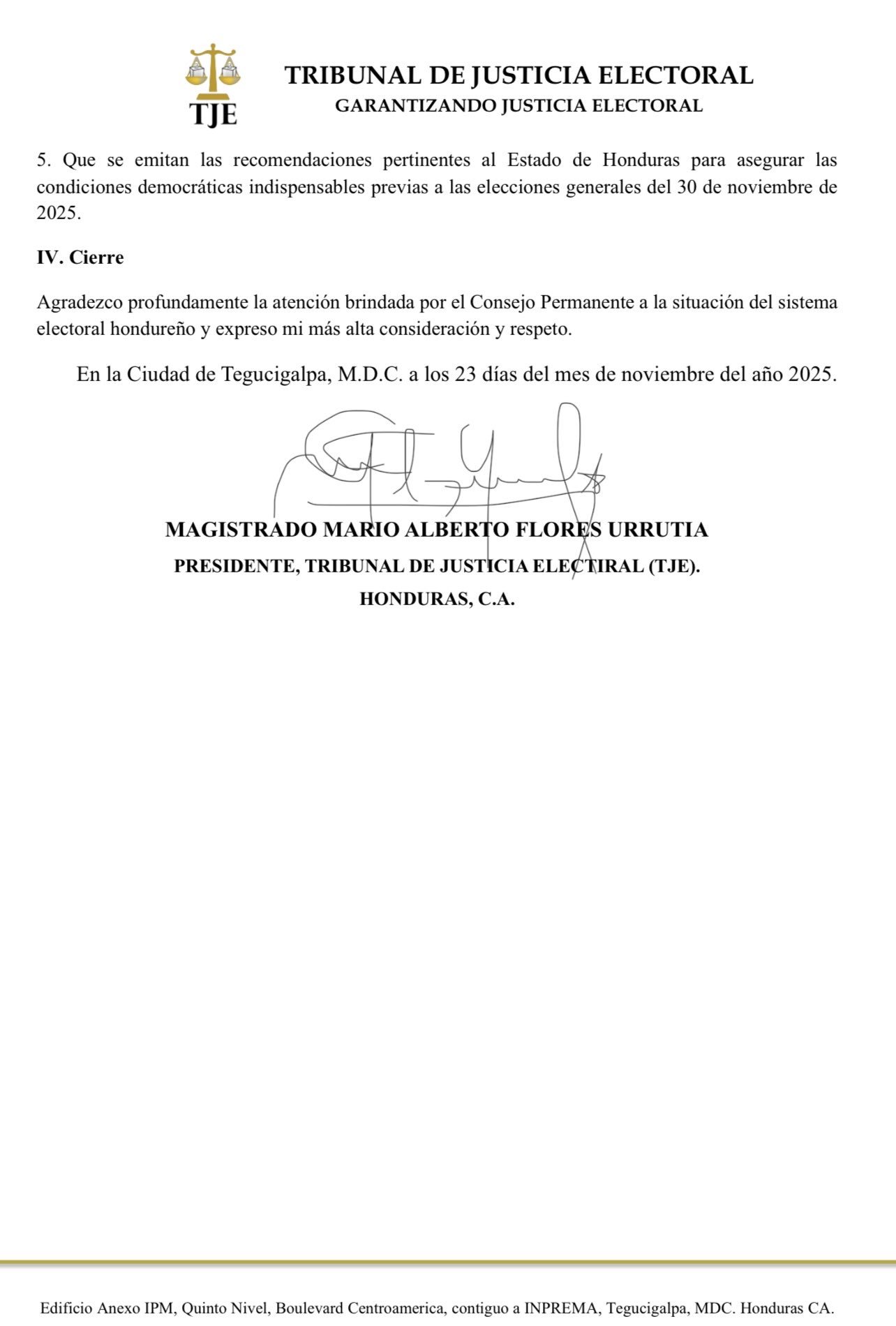 Las cartas firmadas por Cossette López (CNE) y por Mario Flores Urrutia (TJE) presentan: