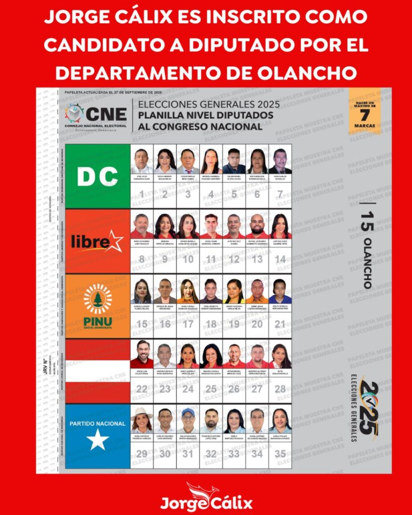 El 27 de septiembre, la página web del CNE mostró la fotografía de Cálix como candidato por Olancho.