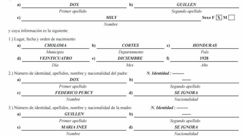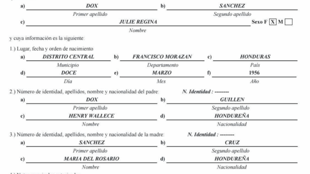 - Julie Regina Dox es hija de Henry Wallace Dox Guillén y María del Rosario Sánchez.